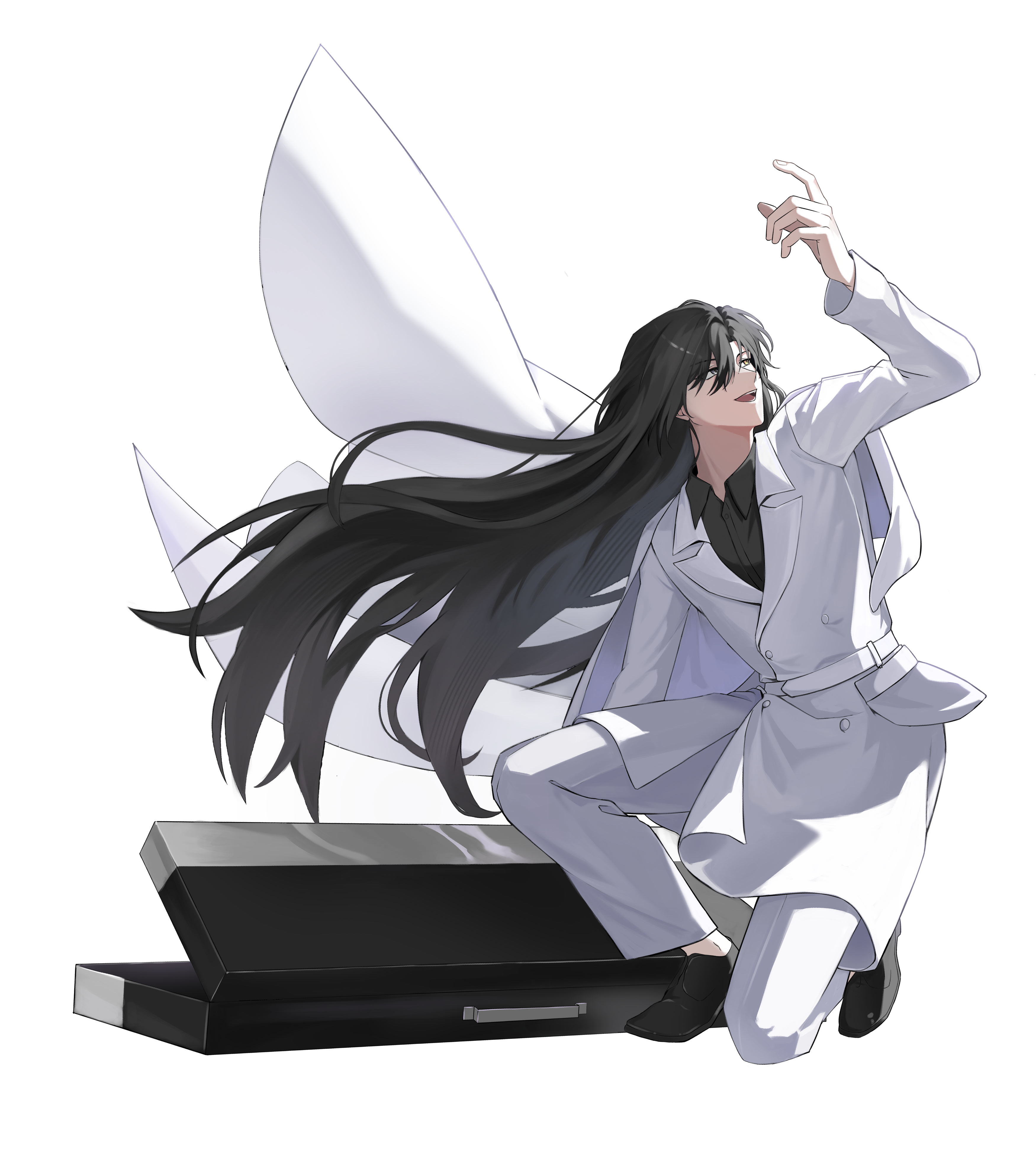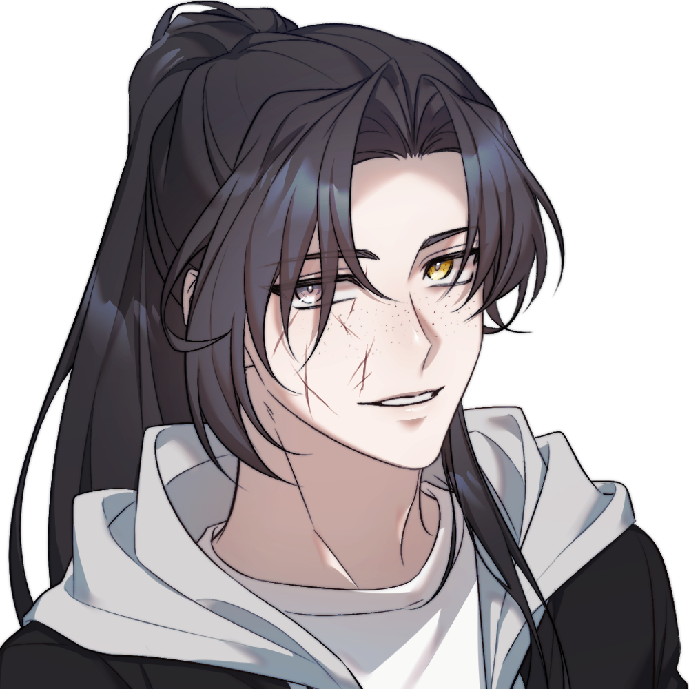 무릎 아래까지 내려오는 흑색의 긴 장발. 반은 뒤로 넘겨 느슨하게 묶었다. 백색과 금색의 눈동자 중 오른쪽 백색의 경우 여전히 긴 앞머리로 인해서 가리지만 앞을 보는데에는 문제가 없다. 그 아래로는 많은 흉터들이 자리잡고 있다. 여전히 맹한 얼굴이라 무슨 생각을 하고 사는지 알 수가 없다.